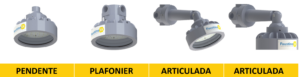 Como fabricantes, entendemos que cada planta industrial possui desafios estruturais únicos. Por isso, a arquitetura das luminárias Faustino Ex foi projetada para oferecer total versatilidade, permitindo diferentes tipos de instalação através de acessórios específicos e robustos: